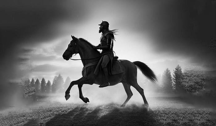 這是我用我的 GreyZone 模型生成的圖像……使用以下提示— Odin 騎著馬,戲劇性的燈光,黑暗,逼真,電影: